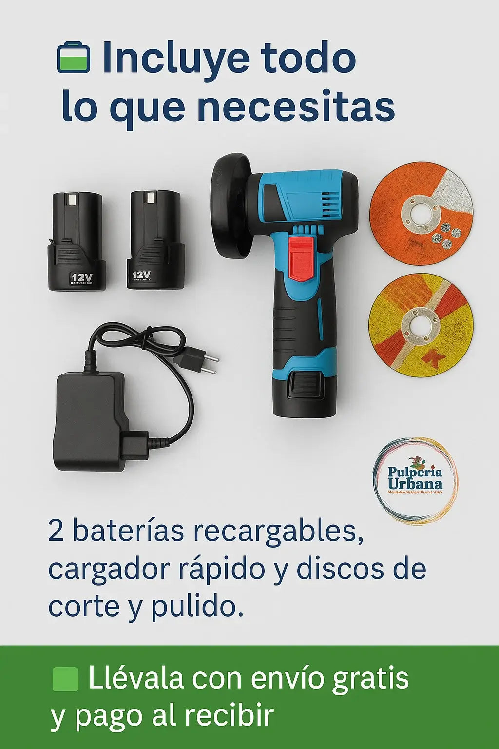 ✅ Discos intercambiables: para distintos materiales (metal, madera, piedra, cerámica).