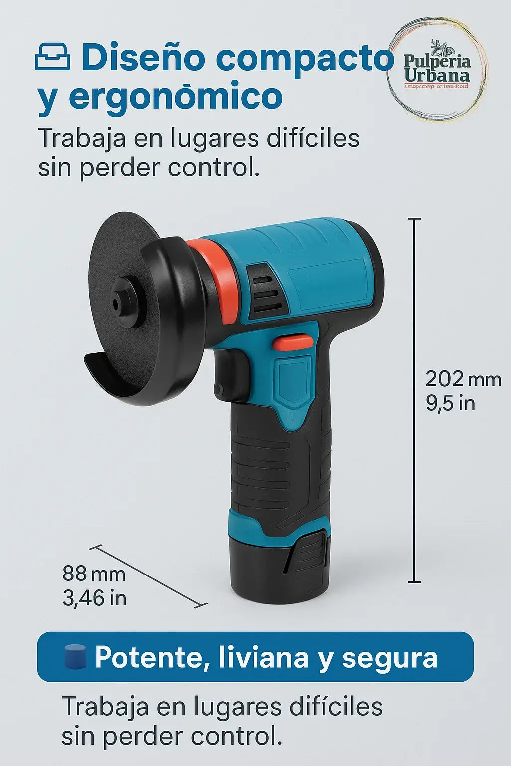 Corta, pule y repara donde quieras con la Mini Amoladora Inalámbrica, la potencia de un taller en la palma de tu mano.
